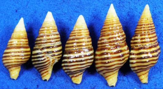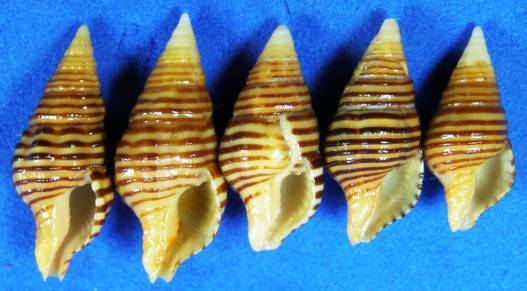 | Item | # 0003650712 | | Family | Fasciolariidae | | Name | Turrilatirus turritus red sea from - SET OF 5 SP., SET # 4 |
