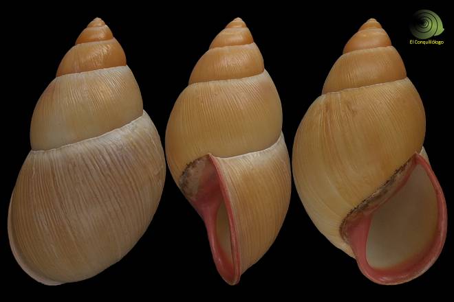 NoteGigantesca concha globosa y alargada de color beige y marrón, grueso labio color rosa sinónimo de madurez, en esta especie el tamaño promedio está en 100,00 mm los ejemplares que superan esta medida se consideran grandes, pero esta gigantesca concha mide 113,48 mm, fue recolectada entre la hojarasca del bosque húmedo a una altura de 1440 msnm al sureste del departamento del Tolima en octubre de 2024.