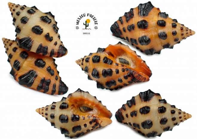 SPECIAL COMBINATION BETWEEN YELLOW COLOR FORM AND STRONG ORANGE COLOR FORM PAIR!! This species is a common between the rocky and shallow waters, but in hundreds you won't find one as easily with full apex as this specimen here and so deep orange aperture color. Rarely specimens are coming with intact apex and perfect black spots conditions combined with so deep orange aperture. Here you can admire the highest level of perfection for the species. With the best intact impressive apex, black spotted spire with magnificent pattern all around and really thick lip combined with the most strong orange color aperture. The most beautiful and colossal giant sizes. Here you can admire the most elegant pair with Museum conditions and the 2 color forms. Strong Orange color form with 14.9mm and the Classic deep Yellow color form with 13.6mm. Do not miss the best pair color combinations ever. For advancer collectors and lover of this awesome Family. Found on stones with mud and brown algae about 3m deep. Escollera el Eden, near Laguna Cuyutlan, Mexico. November 2025. Value for this special ORANGE-YELLOW Museum conditions pair : 25-30 euro. Good luck and Happy shelling!!! MEXICO PACIFIC