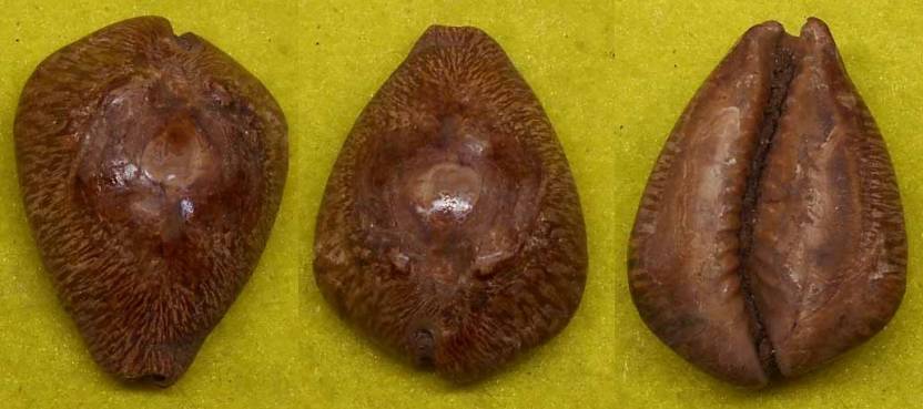 NoteTeeth of a Barycypraea beberkriana. Dorsum of a Barycypraea caputviperae.. Collected from lose soil at the upper slope of this fossil bed..after rain's, by local's. At "The Regency of Jampang". South West of Nyalindung. West Java. Altitude is around 1000 meter's, above sea level. Geological age. Preangerian (Serravallian) Stage of middle Miocene Period