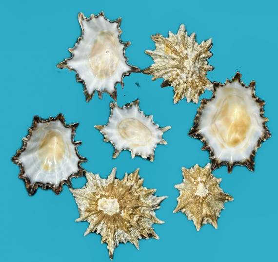 NoteOn exposed rock reef at low water, very different to the shells from low water sheltered pools - set of 7