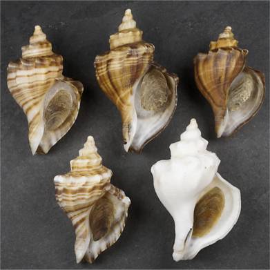 NoteAN ULTIMATE SET, BEAUTIFUL TO LOOK AT. Back to the remote cold waters of the north with a surprisingly appealing shell set. This time it's about a common species that can be found in thousands of restaurants: Neptunea cumingii. It is harvested in Japan, China and Korea and is considered a delicacy. The vast majority of mussels are brown in color, but if you select hard, you can find albino mussels like the one pictured below left among the many thousands of mussels. The present albino cumingii differs from the mussels illustrated by the lamellae on the shoulder and is therefore classified as a superior cumingii. The same applies to the mussel with the bright orange-brown coloration. The brown “spiral form” was selected from a dozen shells. It is not particularly rare, but one of the better pieces that is difficult to find. All in all, a spectacular ensemble, with 2 dark brown, striped - orange and cream and one white. Very difficult to put a set like this together. Thousands of shells are needed for this. Practically impossible for private collectors. White = 96.1 mm, Black = 99.8 mm, Banded Brown = 88.2 mm, Banded Orange = 89.3 mm, Brown = 78 mm. China. Yellow Sea. Between Korea and China. Trawled. 2014. #908086
