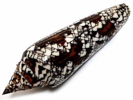 NoteJMM 041 - Conus (Cylinder) bengalensis (Okutani, 1968) BEST SELECTION WITH BEAUTIFUL DARK COLOUR AND PATTERN! (less specimens are found Andaman Sea recently due to limited fisheries!) 96.90 mm, F++, scar, W/O. Trawled at 80 - 100 meters deep offshore of area between Racha - Pee Pee Is., Phuket/Krabi province, Thailand, Andaman Sea, found near the end of December 2025 to early pf January 2026. EX : COLL. Jom Patamakanthin. (***There can be tiny imperfections, scars, damages as natural objects, please bids with your decision & confidence.) Estimated value between 30.00 - 50.00+ euros for such specimen!