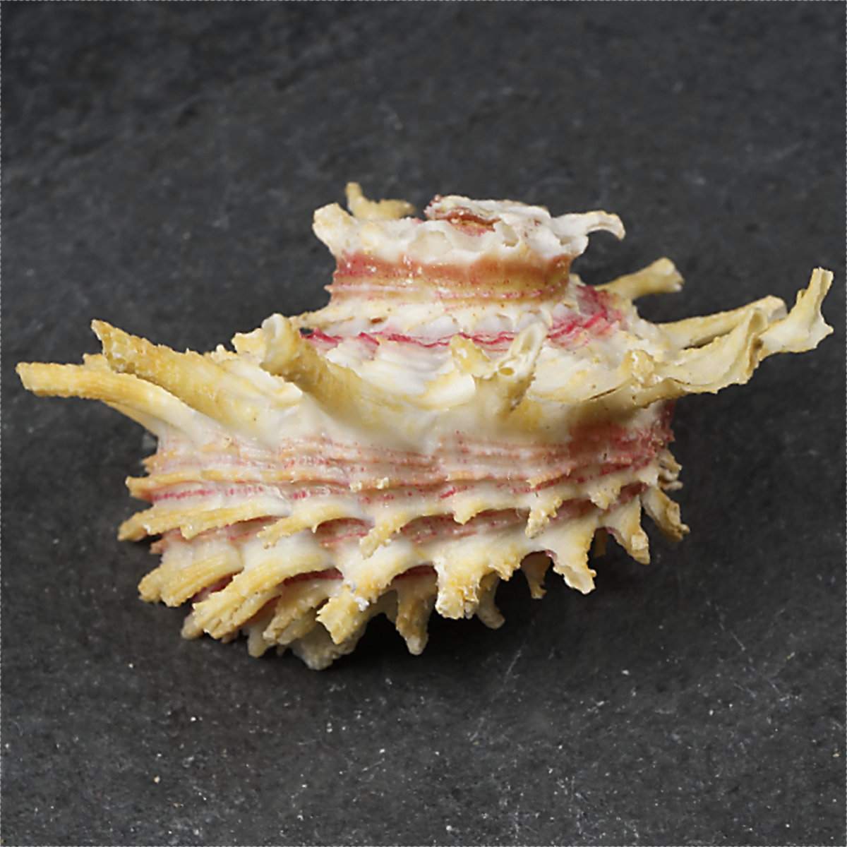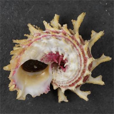 NoteFORMOSA GOLD. Shells such as the Angaria offered here are new to science and unsurpassed in their colouring: golden-yellow spines, carmine-pink body with white shades here and there. The spines are spatulate and broaden towards the ends. Much better than Reeve's Formosa with the 'suspicion of yellow'. The GOLD is stunning, amazing and fantastic. It is one of the most important discoveries of the last ten years in the Philippines in the field of shells. The GOLDS were dived in Siargao, at a depth of 12 metres, on a bottom of sand and rocks. A form of open ocean. Only 14 pieces were collected in total. The area cannot be used commercially and is difficult for divers to access. Super rare and no more new material. Philippines. Mindanao. Siargao. 12 m. On a mixed stones and sand bottom. 2015. #915872