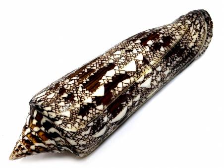 NoteXFB 08 - Conus (Cylinder) bengalensis (Okutani, 1968) BEST SELECTION WITH DARK UNIQUE PATTERNS !!! (less specimens are found Andaman Sea recently due to limited fisheries!) 123.O0 mm, F++/F+++, few small problems here and there, see photos, rare W/O. Trawled at 80 - 100 meters deep offshore of area between Racha - Pee Pee Is., Phuket/Krabi province, Thailand, Andaman Sea, found near the end of December 2025 to early pf January 2026. EX : COLL. Jom Patamakanthin. (***There can be tiny imperfections, scars, damages as natural objects, please bids with your decision & confidence.) Estimated value between 30.00 - 50.00+ euros for such specimen!