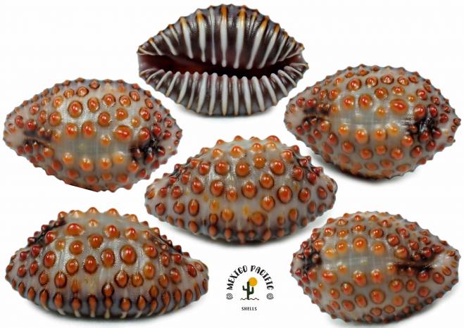 NoteOUTSTANDING DENSE DORSAL GREY COLOR WITH ABESENT RINGED PUSTULES!! The real dorsal side is dominated by the gray glossy background color with a few pustules only on top making a great unique effect and the glossy Orange amber color pustules on top are really elevated and with no ring around the pustules, something unusual that's makes a big difference between the regular ones with ringed pustules. Globose and wide form combined making the best beauty. A real excellent and extraordinary at its greatest splendor. Jenneria pustulata is considered by collectors to be one of the most beautiful species in the world due to its unique characteristics and clear distinction from other species within the Ovulidae family. For any Beauty -jewels lovers and aesthetic collectors. Do not miss this unique opportunity to get this excellent beauty combined with spectacular fresh vivid colors and very granulated shape. Note: Jennerias in Mexico are much smaller than in Central America but more DARK IN COLOURS. Here in this auction you can see how variable this species can be in shapes, sizes, colors and more. Choose your favorite in this special auction. Found attached between corals and stones about 3-6m deep. Between Bahia de Piedras and Islotes Los Lobos Marinos, near Melaque, Jalisco, Mexico. January 2026. Value for this special beauty with scarce pustules on dorsum and absent rings around each pustules : 20-25 euro or more. Good luck and Happy shelling!!! MEXICO PACIFIC