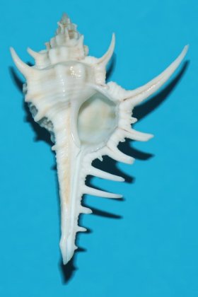 NoteTypical shell trawled in the Arafura Sea off the Northern Territory. There is a chip on the end of the siphon (refer photo), and there are a number of spine chips.