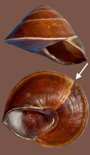 NoteSelf Collected. Under logs and fallen palm fronds in rainforest. Queensland, Tamborine Mountain, Tamborine Mountain Road. 2005. Note: Two growth steps where indicated, one extending onto base of shell.