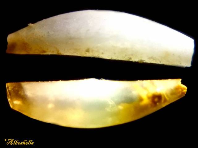 Note16802 Cadulus jeffreysi (Monterosato, 1875) 3-3 mm Italy F++, trawled 200m, Capraia ( Italia) 1997
