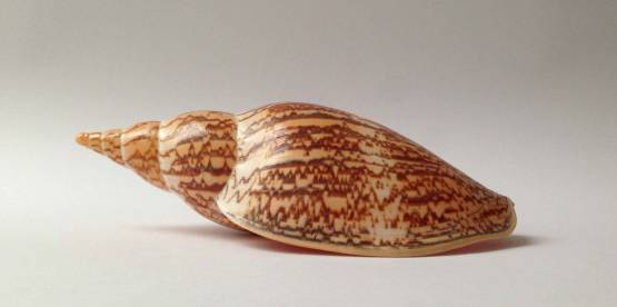 A MAGNIFICENT ULTRA-LARGE specimen of the New South Wales form – the most beautiful incarnation of the species. Characteristic elongate form. Ultra-rich colour. Atypically dense, SPECTACULAR PATTERN. Exemplary quality for the species, habitat, locality, and collection method. Hypermature, with thickened apertural lip. Not freshly collected for decades, and now obtainable only from choice old collections. Data: Off Eden, New South Wales, Australia; upon mud/sand/detritus substrate; 100-140 m; trawled; 1987. Size: c.200 mm. Grading: Fine++. Provenance: JES Collection; London / Melbourne.