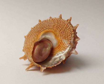 An EXCEPTIONAL specimen of this rare, extreme deep-water, endemic north-eastern Australian species. Exquisite rich earth palette. Exemplary preservation of all peripheral spines. Retention of beautiful dusky pink original operculum. Ultra-clean, with none of the typical substantial encrustation which detracts from the majority of examples. Not freshly collected for around four decades, and now obtainable only from choice old collections. Very seldom offered at this level of quality and beauty. Data: Off Nambucca Heads, Mid North Coast Region, New South Wales, Australia; upon sand substrate; 120-140 m; 1982. Size: 57.5 mm (width). Grading: Gem; w/o. Provenance: JES Collection; London / Melbourne.