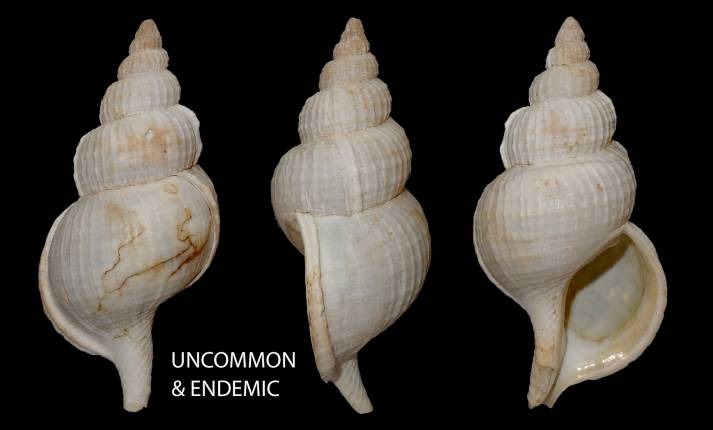 NoteFamily Cymatiidae. THis shell is UNCOMMON & ENDEMIC. Very seldom offered. These shells are completely white or off white. This one has a very good lip !Dredged between 160 to 600 m.