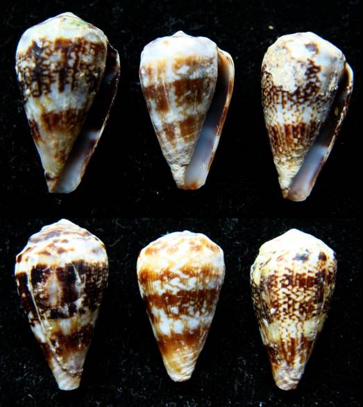 NameConus (Lautoconus) cuneolus - Set of 3!! , Reeve, 1843