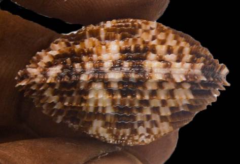 Note | FINE+++, Lovely pattern and beautiful color, SPLENDID VARIETY, Extra ordinary and nice. Net by local fisherman 20 to 25 m, The shell features a mix of earthy colors—creamy white, and rich brown—with darker patterns giving it a striking, live taken, during the month of April 2025. |