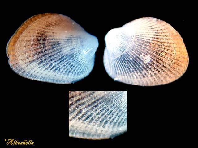 7630 Crenella prideaui (Leach, 1815) 2 mm Spain BIVALVE F++, dived 3-4m ,detrit, Malaga 2014 Ex coll.
