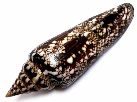 NVX 052 - Conus (Cylinder) bengalensis (Okutani, 1968) BEST SELECTION WITH BEAUTIFUL DARK COLOUR AND PATTERN! (less specimens are found Andaman Sea recently due to limited fisheries!) 117.30 mm, F+++. W/O. Trawled at 80 - 100 meters deep offshore off Racha - Pee Pee Is., Phuket/Krabi, Thailand, Andaman Sea, found early of November 2025. EX : COLL. Jom Patamakanthin. (***There can be tiny imperfections, scars, damages as natural objects, please bids with your decision & confidence.) Estimated value between 50.00 - 60.00+ euros for such specimen! (### Now we ship parcels to USA once again but with limited weight is up to 5 kg and via e-package (reg. airmail) service only. ###)