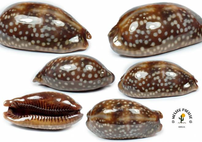 NoteOVERGLAZED LIGHT COLOR WITH EXTRA DOTS ALL AROUND!! The shell shows a light overglazed cloudy color around the dorsal side combined with dark under banding pattern with a clear thick horizontal band and several mixed dots all around. Short body shape with elegant thickness and heavy. Some usual imperfections not really detracting the beauty. F+++. This nocturnal species are most attached under the stones during the day, the animal black-grey it assimilates a dangerous organism with very large and thick spines, truly imposing when it is actively walking. Found attached under stones with mud about 3 and 5m deep. Escollera el Eden near Laguna de Cuyutlan, Colima, Mexico. November 2025. Value for this overglazed cloudy and fully dense white mixed dots all around : 30-33 euro. MEXICO PACIFIC.
