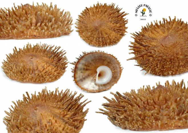 NoteULTRA RARE SEVERAL SPINES LIKE A HAIR WOOOOW!! CALYPTRAEIDAE - Crucibulum spinosum (Sowerby, 1824). If there should be a spines limit, this is the maximum number of spines this species can reach. The real dream spiny ultra rare Museum conditions!! This shell shows a fantastic dark brown dominant coloration on the dorsal side and The ventral side is just stunning and magnificent with glossy dark brown banding colors combined with white cloudy and white extra middle intact plate. There is almost no spice for more spines except for the intact apex side, The craziest hair spines effect and form, see pictures. Apex complete intact combined with complete lip and perfect several and multiple spines. The real Museum piece, the one we all want to have. Rare to get species with so complete and perfect spiny high level conditions. Really the highest selection of the best of the best for the species. Unique opportunity to get a real perfect masterpiece , for Aesthetic shells lovers. Gem. 33.7mm with spines. Found attached between buried in muddy stone about 6m to 7m deep. Barra de Navidad, Jalisco, Mexico. November 2025. Value for the most dense spines you will have and you can get for this amazing species: 50-60 euro. Good luck and happy shelling. MEXICO PACIFIC.