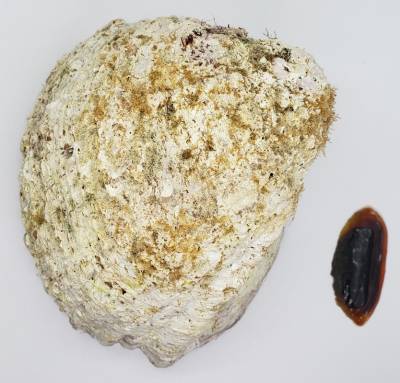NoteThis is a huge, giant specimen of Concholepas concholepas in good condition for such a size. This is also a rare orange-interior shell, which usually has whitish interiors. Large specimens are now rare because this species is very heavily extracted, so obtaining one like this is very difficult. This one was collected in rather deep water by a diver, in an rocky outcrop far from the coast. This shell has the border with one noticeable old scar where a barnacle was attached, but with no large chips, and with the dorsum lightly cleaned and still covered in many small barnacles, which can be cleaned with some patience. This specimen preserves it operculum, which is usually discarded. I am starting at a very low price for a specimen of this huge size due to the small flaws.