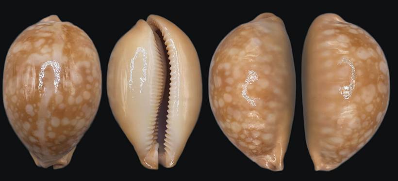 NoteCallistocypraea nivosa collected by diver at 18 off Kilakarai, India. 61,4 mm F+++/GEM