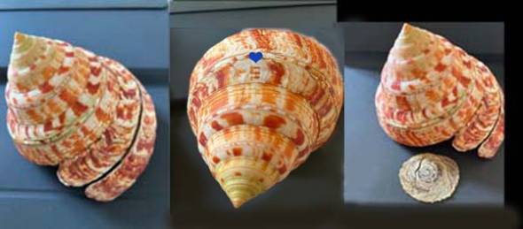 Notevery nice looking and colorful shell, w/o, with a clear red number 5 on one tour!,cream yellowish special regular pattern with regular red blotches and flames, yellowish spire, F+++/F++++, only tiny small natural defects, trawled off Roatan Is in year 2000, 'll be described as adansonianus roatanensis n° 3, from a private french collection