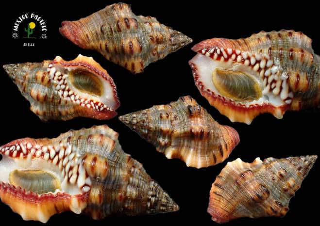 NoteSPECIAL FRESH COLORS COMBINED WITH INTACT CONDITIONS WOOOOW!! The most dark and colorful masterpiece combined with brown-orange, grey, white and black spiral lines pattern. Exceptional aperture with the incredible white-large granulate glossy dots in the inner lip between the dark red background color and serrated red thick lip. Great size with the best dorsal brown-green effect pattern colors and elongated unusual body form. Really dark and so high level of conditions. Gem. For advancer collectors and lover of this awesome Family. Found on stones with mud and brown algae about 3m deep. Barra de Navidad, Jalisco, Mexico. March 2026. Value for this special strong dark colored and fresh masterpiece : 15-18 euro. Good luck and Happy shelling!!! MEXICO PACIFIC