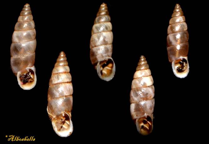 Note7314,1 Solatopupa similis (Bruguière, 1792) 11,08-10 mm France LANDSNAILS F++, set 5 items, near Montpelliere, on rocks, 10/2006