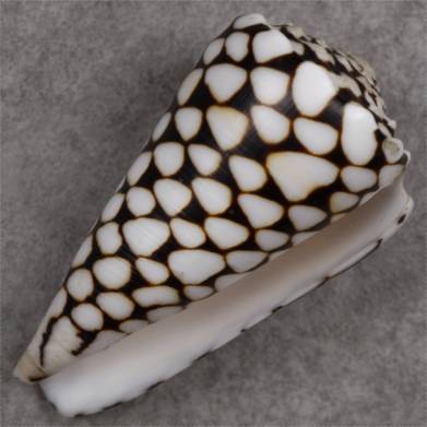 GEM. In extremely rare cases, C. marmoreus has parts of the shell with an orange pattern. There even exists one piece half orange, half black which went to a private collection years ago for several thousand dollars. Less spectacular, but as rare is this C. marmoreus with an orange band at one third of the height of the shell. A beautiful award winning piece.