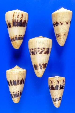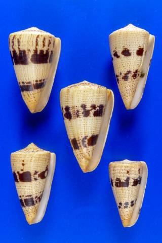 Conus augur - SET OF 5 DIFFERENT COLOR , Lightfoot, 1786