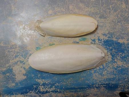 | Note | 2 Sepia officinalis, cuttle fish bones, 155 mm ,126 mm , from fishermens' nets, Evia island, Greece,October 2023 |