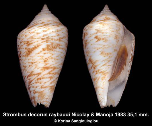 | Name | Strombus decorus raybaudi - Exceptional Zigzag Patte , Nicolay & Manoja 1983 |