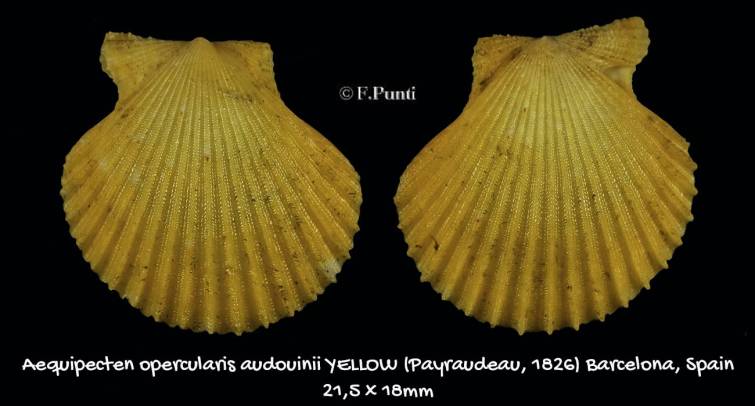| Name | Aequipecten opercularis audonii - AWESOME YELLOW F++ , Payraudeau, 1826 |