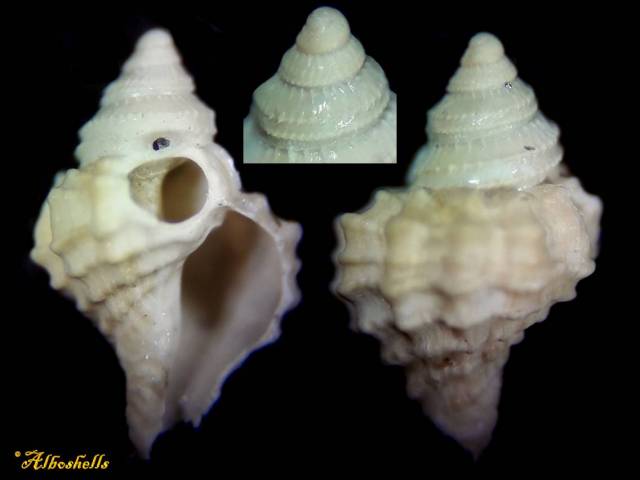 7690 Coralliophila panormitana cfr 3 mm Spain CORALLIOPHILIDAE F++, HOLE, intact protoconch , 150-180m, Granada 2015