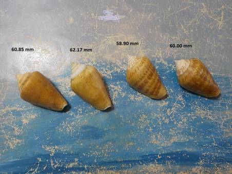 | Note | 4 superb and big specimens of Conomurex persicus , 60.85 mm , 62.17 mm , 58.90 mm , 60.00 mm ,taken alive on sandy bottom , w/o, 4 meters deep, Evia island, w/o, and with periostracum,July 2023 |