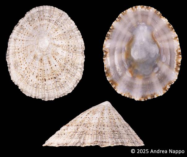 Patella rustica Linnaeus, 1758. Spain, Malaga Bay. 48.8 mm
