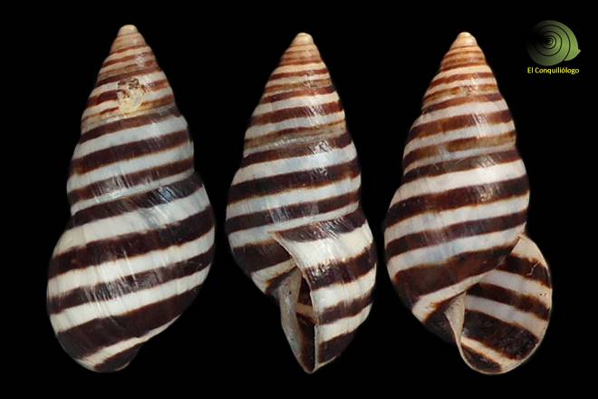 | Note | Concha con un lindo patrón de bandas negras y blancas, presenta maltrato por golpe en la cuarta espira, recolectada entre cactus en terreno seco a una altura de 2670 msnm en enero de 2025. |