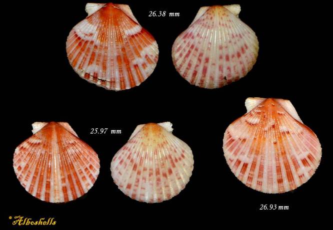 Note16522 Perapecten commutatus (Monterosato, 1875) 26,38-25,97-26,93 mm Spain PECTINIDAE F+++, set 3 items,trawled 80-150m, Malaga 4/2023