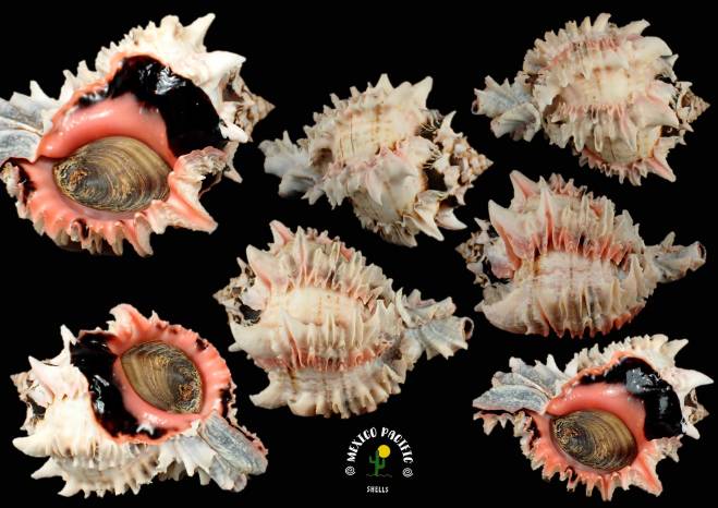 | Note | THE REAL COLOSSAL AND THICK PINK APERTURE!! Really deep exceptional pink ventral color form. Giant size for the population in Cuastecomates with 119.7mm , really hard to get at this sizes. Mexican Phyllonotus regius are smaller in sizes than the ones from Ecuador and Peru reaching sizes to almost 190mm. Mexican populations are more Dwarf and variable on forms and colors. Here this giant beauty is coming with white, cream, pinkish colors in the dorsal side and the ventral side with very clear crazy contrast between the bright colors outside the aperture and strong vivid pink colors inside the aperture with exquisite superb black large shiny spot in the posterior side of the aperture. Heavy, colossal, massive and the most thick spiny lip ever. Curved spiny spire with intact apex, perfect lip and superb siphonal canal. The real thickness combined with impressive pink-black aperture!! Without a doubt this masterpieces are a treasure for anyone who wins it. Carefully handpicked with years of experience and cleaned preserving its natural parts. It is much more impressive in your hands because of the details that you can't see in the photos. Super high selection in situ with the best exceptional conditions you can get for this extraordinary and seldom seen species, choose your favorite in this great auction. For any MURICIDAE lovers of aesthetics and advancer collectors. Masterpiece pink rarity. Some insignificant natural imperfections like light erosion and drill holes not really detracting this pink and heavy giant beauty. Found buried in granulate thick sand between muddy stones about 9m- 10m deep. Cuastecomates, Jalisco, Mexico. November 2025. Value for this unique giant, thick, colossal and strong pink colors: 100-130 euros. Good luck and Happy shelling!!! MEXICO PACIFIC |