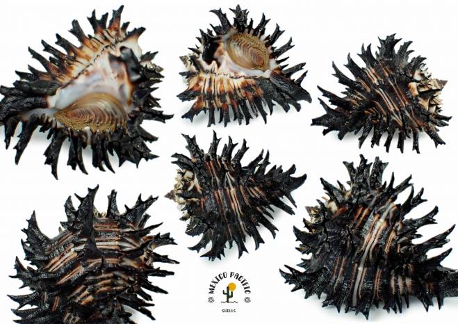 | Note | THE LONGEST SPINES ALL AROUND WOOOOW!! Tremendous extra long wing lip spine with extended and curved form combined with branching spines between, the rest of the lip presents a great long spines too. Superb black coloration with some spectacular brown-black banding between the white ventral background. The spire spiral is so crazy with a great spiny effect. Intact apex, lip, siphon and the most elegant long spines. Gem-F+++ The best exquisite high selection for this seldom seen species. Do not miss this unique opportunity to get this real top black spiny masterpiece specimens, very selected from many dives and very difficult to clean them to reach this results, hours cleaning with ultrasonic scaler. The Muricanthus population in Barra de Navidad, Jalisco is unique, as the specimens are inside a lagoon with mangroves nearby and protected from currents, waves and directly sun light, most of them covered with algae and mud keeping their apex, spines and body generally intact, something completely different from the populations in the open sea, with much damage to their shells-spines, fully with erosion, drill holes, really ugly and complete covered by very thick hard to remove calcareous attachments. Even so, these specimens here are incredibly rare with so much better conditions for the species as usual, with incredible shapes and spines. Without a doubt this masterpieces are a treasure for anyone who wins it. Carefully handpicked with years of experience and cleaned preserving its natural parts. It is much more impressive in your hands because of the details that you can't see in the photos. Super high selection in situ with the best exceptional conditions you can get for this extraordinary and seldom seen species, choose your favorite in this great auction. For any MURICIDAE lovers of aesthetics and advancer collectors. Masterpiece rarity. Found attached and buried between muddy stones with oysters about 6m- 7m deep. Barra de Navidad, Jalisco, Mexico. November 2025. Value for this extra long spines rarity with elongated lip spine wing: 100-120 euros. Good luck and Happy shelling!!! MEXICO PACIFIC |