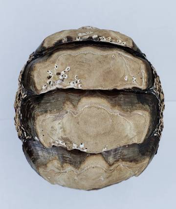 | Note | One interesting specimen of Enoplochiton niger. This one was washed ashore and was found dry and curled, measuring (curled) at 56 mm, and flat (or detached valves) would measure about 110 mm. This is one of the largest Chiton species, but it is very difficult to obtain as it lives in the surf zone and it is hard to detach from the smooth boulders where they live. They usually have very eroded shells, often with Scurria parasitica and algae covering their shells. This specimen has very eroded valves as usual, as can be seen, but I have put a very low initial price for this interesting large chiton from the southeastern Pacific. |