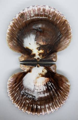 | Note | One very nice gargantuan and giant 142.5 mm (W) x 123.5 mm (H) specimen of the only pectinid species found in northern Chile: Argopecten purpuratus. This is the largest Argopecten purpuratus specimen that I have seen so far. This specimen was recently collected alive by a diver at about 15 m depth in a very remote location. Argopecten purpuratus have purple, pink, brown, orange or white coloration, with mixed patterns too. This specimen is in very good condition for the species and for the huge size, having only some old scars and some remainings of cirripedian on one valve. The specimen was cleaned lightly with only soft brushes and water so it displays the very nice feathery sculpture of the ribs, but can be cleaned to perfection with some care. An interesting pectinid for the collector of giant shells or for your wunderkammer, impossible to get in this size. |