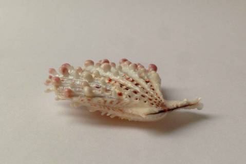 | Note | An OUTSTANDING, extremely LARGE specimen of the FLORIDA form of this exquisite species. Ultra-knobby and foliate. The finest possible quality, with exemplary level of preservation of all delicate lamellae. Beautiful colour: externally pinkish-bluish white ground, with burgundy accents, and deep pink to lamellae; internally rich mauve, and buttercup yellow. It is now very difficult to obtain such large and spectacular specimens of the deep-water Florida form, with specimens coming almost exclusively from choice old collections. The BEST of the best for the pecten specialist. Data: Off Boca Raton, Palm Beach County, Florida, USA; upon sand/rubble substrate, at night; 42 m; dived; 1999. Size: 48.8 mm. Grading: Gem. Provenance: JES Collection; London / Melbourne. |
