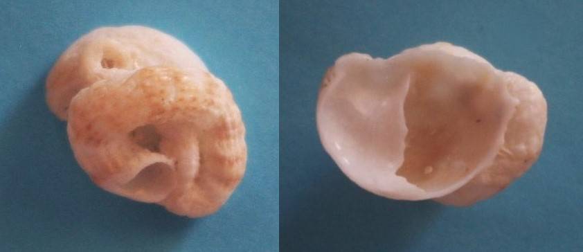 beach; VERMETIDAE family; worm shell attached to Crepidula sp.