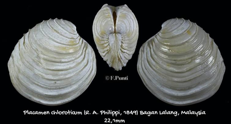 | Item | # 0004013312 | | Family | Veneridae | | Name | Placamen chloroticum - AWESOME Pretty F++ , (R. A. Philippi, 1849) |