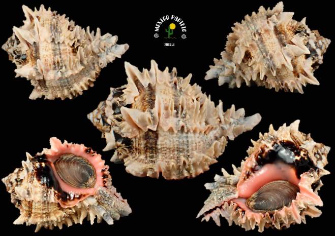 The siphonal canal and columellar lip just intact and natural. Superb spiny shoulder-spire side with great apex. F+++. This species lives deeper in my area and it is impossible for me to find them. Before the cold water arrives, they reproduce by gathering in groups. This year I was lucky enough to find some specimens in incredible conditions, which is rare at these depths. This species likes muddy areas and murky waters, which makes them difficult to find. Without a doubt this masterpieces are a treasure for anyone who wins it. Carefully handpicked with years of experience and cleaned preserving its natural parts. It is much more impressive in your hands because of the details that you can't see in the photos. Super high selection in situ with the best exceptional conditions you can get for this extraordinary and seldom seen species, choose your favorite in this great auction. For any MURICIDAE lovers of aesthetics and advancer collectors. Masterpiece rarity. Found buried in granulate thick sand between muddy stones with oysters, chamas and mussels about 6m- 7m deep. Barra de Navidad, Jalisco, Mexico. December 2025. Value for this special light banding form with great pinkish-cream colors and great spines: 70-80 euros. Good luck and Happy shelling!!! MEXICO PACIFIC |