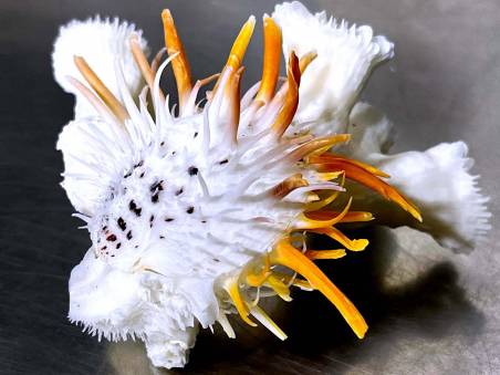 | Note | JMM 009 - Spondylus sp. FROM THE LATE 90'S (different from known species in all books! Some with rare purple, reddish orange, yellow, light brown or even pink spines on white body, some bi-color on both valves!) THIS LOT of 22 SHELLS (offered individually) WAS DISPLAYED AT JUNGCEYLON SHELL MUSEUM A FEW YEARS AGO, THAT'S HOW SPECIAL THEY ARE !!! size is approximately 111.00 mm (measured at maximum dimension across the shell & attachment altogether), shells are F++ and better, in general, please see photos, collected by local divers offshore at 15 - 20 meters deep off Racha & Maiton Is., Thailand, Andaman Sea. EX : COLL - Jom Patamakanthin. (***There can be tiny imperfections, scars, damages as natural objects, please bids with your decision & confidence.) Estimated value between 50.00 - 100.00+ euros for such museum-class specimen! |