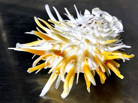 | Note | JMM 015 - Spondylus sp. FROM THE LATE 90'S (different from known species in all books! Some with rare purple, reddish orange, yellow, light brown or even pink spines on white body, some bi-color on both valves!) THIS LOT of 22 SHELLS (offered individually) WAS DISPLAYED AT JUNGCEYLON SHELL MUSEUM A FEW YEARS AGO, THAT'S HOW SPECIAL THEY ARE !!! size is approximately 88.30 mm (measured at maximum dimension across the shell & attachment altogether), shells are F++ and better, in general, please see photos, collected by local divers offshore at 15 - 20 meters deep off Racha & Maiton Is., Thailand, Andaman Sea. EX : COLL - Jom Patamakanthin. (***There can be tiny imperfections, scars, damages as natural objects, please bids with your decision & confidence.) Estimated value between 50.00 - 100.00+ euros for such museum-class specimen! |