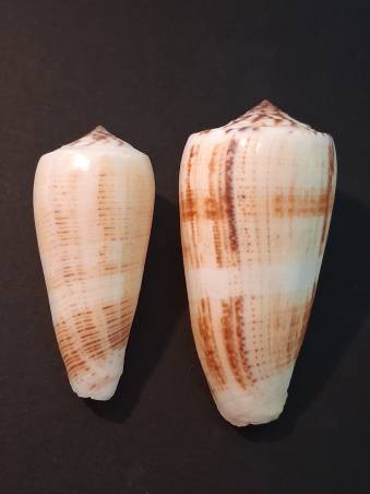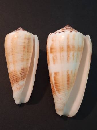 NoteConus magus f. raphanus Vinh Hy Bay, Vietnamese diver at 10/25 m in 2024. 64/53.3 mm F+++/GEM, lip slightly filed.