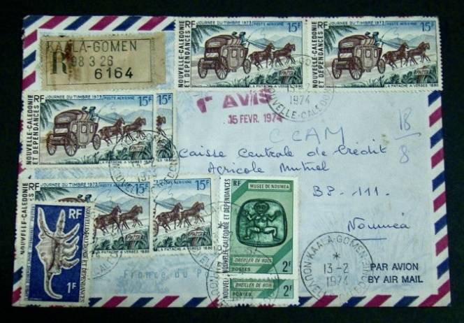 NoteLambis Scorpius - Letter by Airmail with registered N°6164 Quality : F+++ >> Superb Condition ( Condition of use ; see photos ) ; February 1974 // NEW CALEDONIA ( POST-OFFICE OF KAALA-GOMEN ) . VERY RARE . CATALOG VALUE 2018 ( Similar letter ) : 110 euros . ONLY ONE IN STOCK .