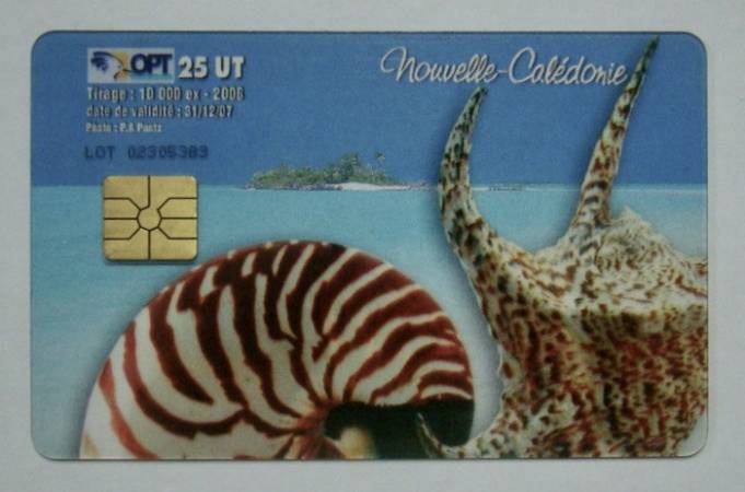 NotePhone Card : 25 UT in Plexiglass / Edition : 10.000 copies ; dated : 2006 . Nautilus Macromphalus & Strombus Rugosa from New Caledonia // RARE : Extra condition : F+++/GEM // Catalog Cotation : 45 euros